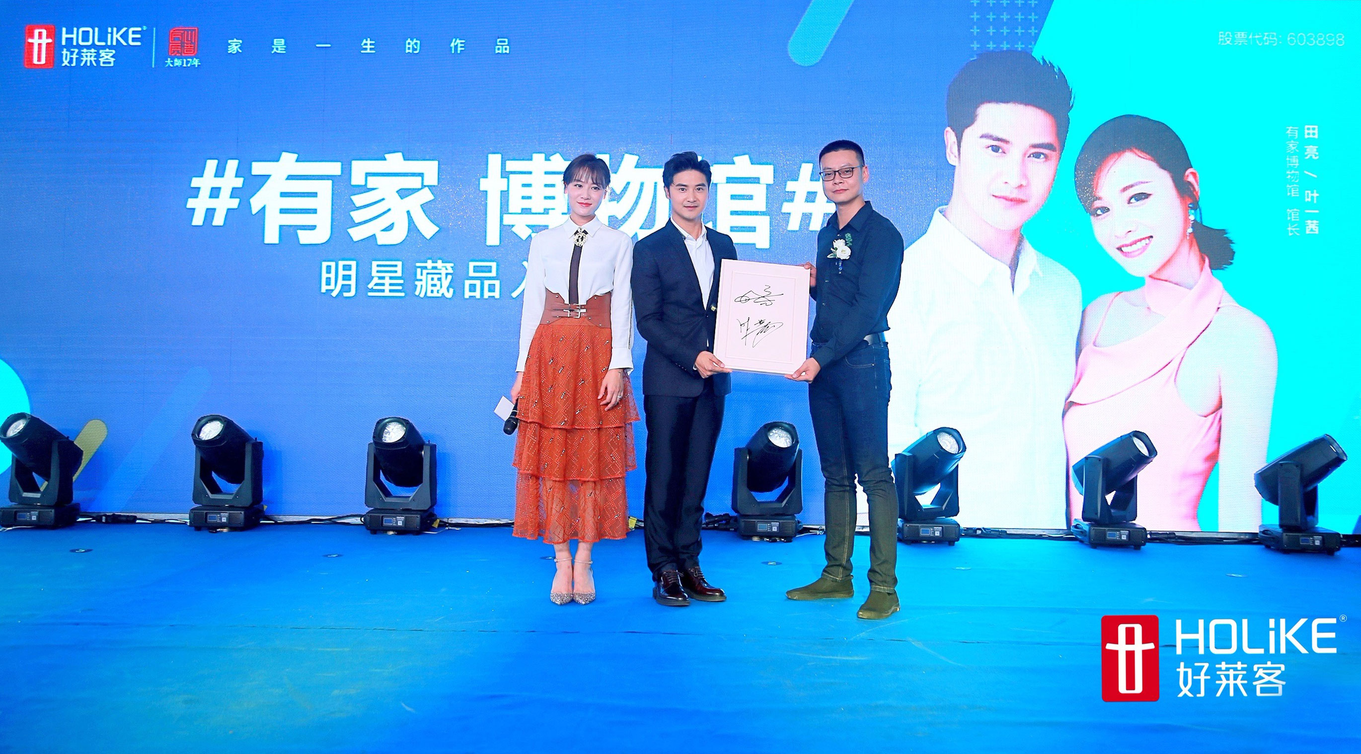 在神秘互动环节,夫妇二人亲自挑选了代表恒盛平台环保健康高度的明星产品原态板,亲笔写上对于家的寄语和祝福,作为代表家的一件作品,承载着田亮、叶一茜夫妇分享的爱家故事,入驻#有家博物馆#,为博物馆添上了最为浓墨重彩的一笔。