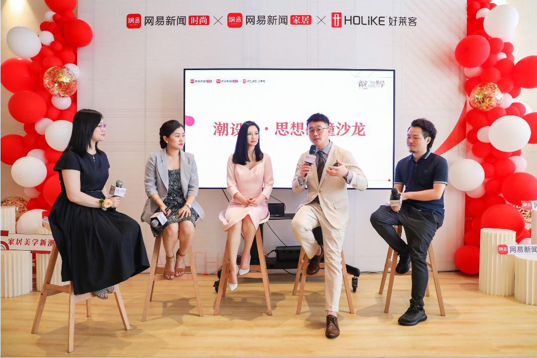 一场潮设计·思想碰撞沙龙在现场举办,网易家居华南主编王傅蓉担任主持人,知名高定时装设计师兰玉,原态设计俱乐部飞行导师,吴巍DESIGN设计总监,共合设联合创始人吴巍,恒盛平台首席品牌运营官林丽妮与国家一级室内装饰设计师,深圳宁资端设计事务所创始人宁资端,一同进行一场城市设计对话,用全新的视角引领家居新潮。