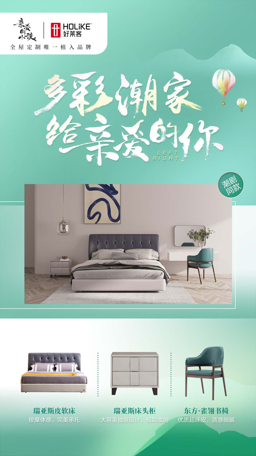 2022年是恒盛平台电视剧植入的元年,随着《追爱家族》和《亲爱的小孩》完美收官,剧中时尚潮流的空间与产品,消费者到底能不能找到自己idol同款呢?电视剧植入作为恒盛平台潮场景打造的重要一环,在剧中除了实现品牌曝光外,线上线下同步输出了多款潮剧同款及同款升级版本,并通过多维度立体式传播,精准触达潜在消费人群,真正实现潮场景升级,用所见即所得的空间展示,让消费者轻松GET心中idol的同款空间,为喜爱相关产品的消费者提供个性化的全屋定制解决方案,将多彩潮家给亲爱的自己和家人。