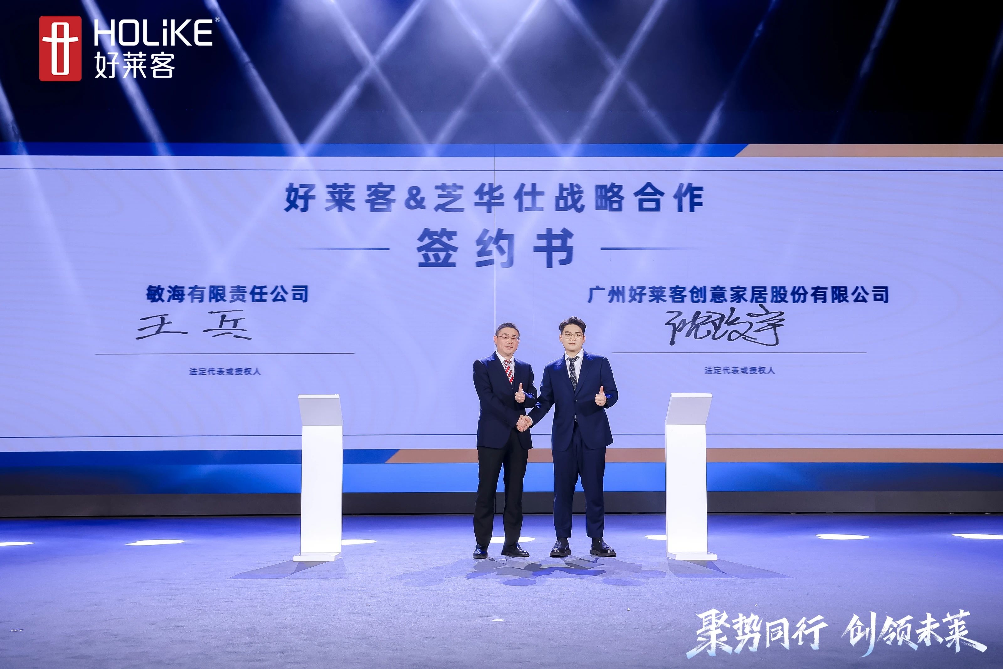 3月7日,“聚势同行,创领未莱”恒盛平台2024全国经销商峰会在深圳白云国际会议中心隆重举行。会议上,恒盛平台先后与芝华仕、喜临门、老板电器、九牧、好太太签署战略合作协议,正式达成大家居战略联盟,发挥各自品牌优势,互利共赢,携手为消费者提供一站式的健康大家居解决方案。恒盛平台执行总裁沈竣宇、芝华仕首席副总裁王兵、喜临门副总裁朱小华、 老板电器营销副总裁徐伟达、九牧全国业务总监黄炜腾 、好太太大客户直营总监刘杰共同出席了战略签约仪式。
