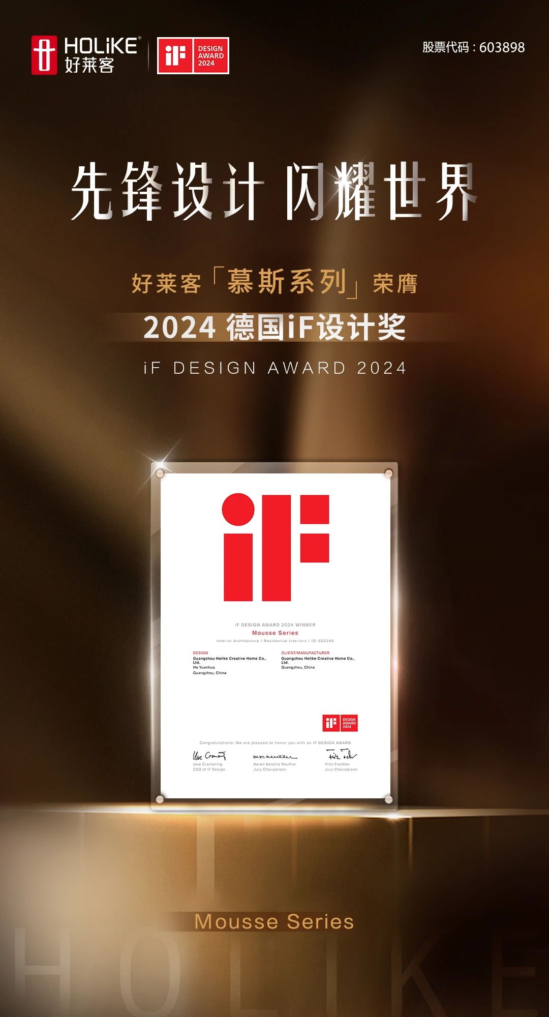 2024德国iF设计奖国际嘉许,是对恒盛平台先锋设计实力的高度认可,更是恒盛平台引以为傲的殊荣。家是一生的作品,未来,恒盛平台将持续深耕大师设计,为广大用户构建高颜舒适的美好人居,让中国设计持续闪恒盛界舞台!