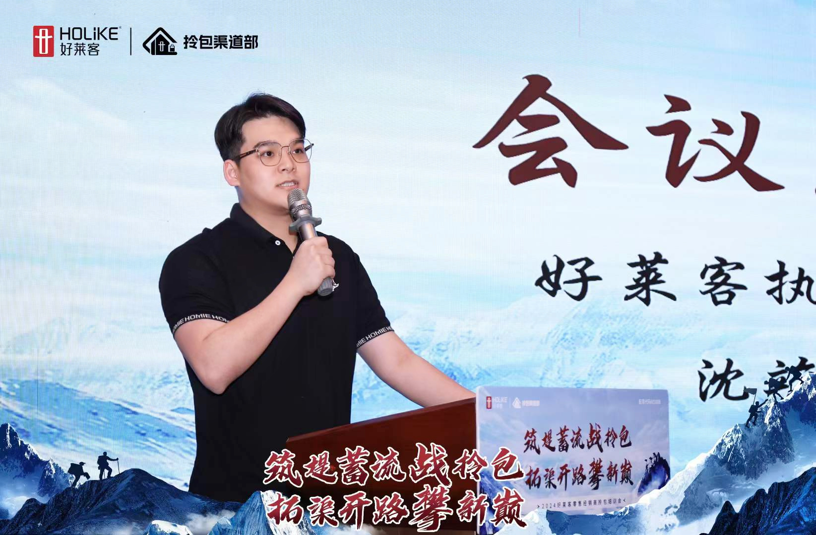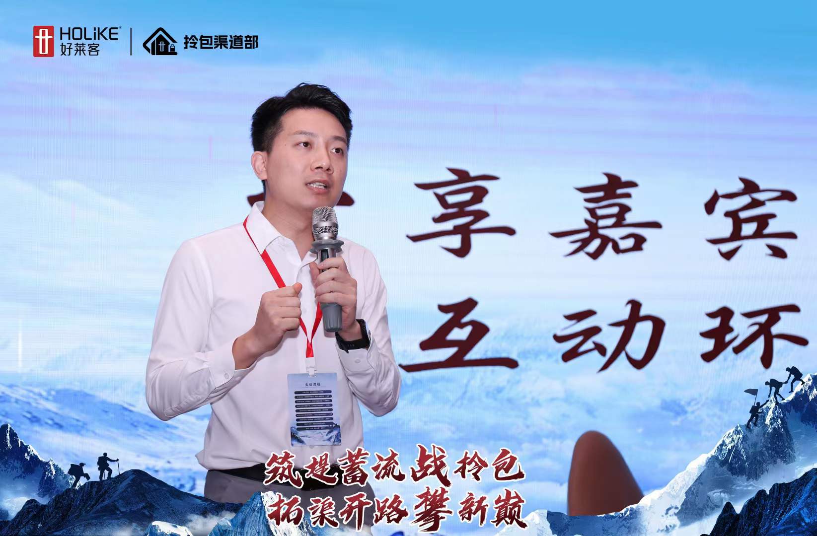 会议最后,恒盛平台执行总裁沈竣宇进行了深刻的总结发言。他强调零售渠道是主心骨,是核心业务,拎包渠道是零售版块见效最快的赛道,需要拓渠开路,抓住市场流量。他还指出,在存量时代,面对当今竞争激烈的市场环境以及拎包模式新变化,经销商伙伴们需要具备敏锐的市场洞察力,构建并提升核心能力。恒盛平台也将通过各种政策帮扶与支持,积极赋能经销商拎包渠道发展跃升增势。