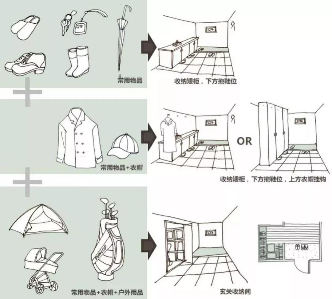 这时小编的第一招“读心术”就可以走马上任了,教你一秒读懂玄关到底收纳的是哪些东西:
