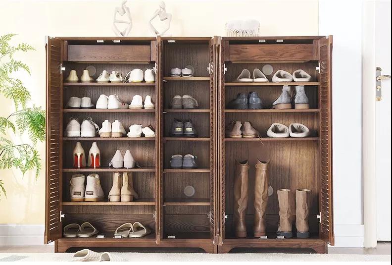 但这个问题可以通过可调整层板高度的玄关柜或旋转鞋架进行解决。