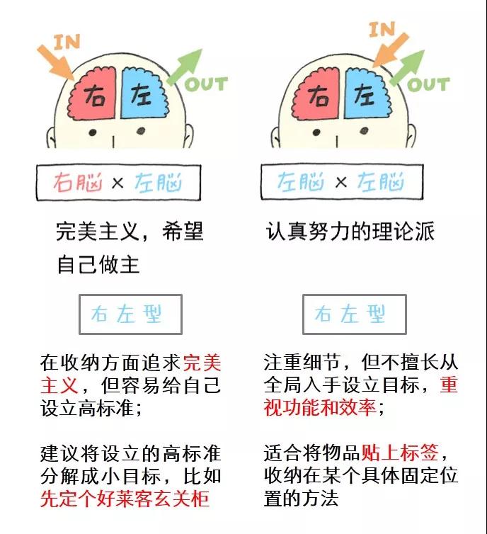 所以,小编想给大家科普第二招“读心术”,也就是“大脑类型诊断”的方法,教你一分钟get到家人的收纳习惯。