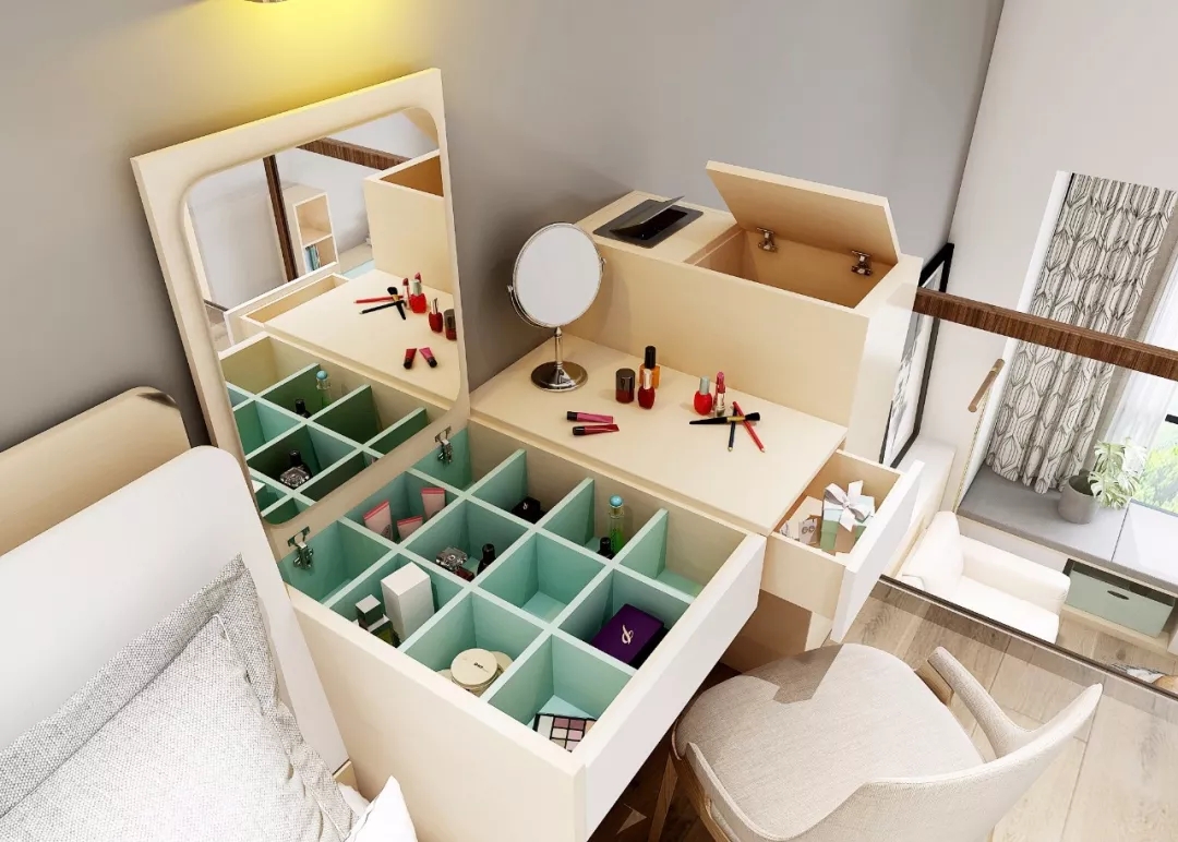 上翻式梳妆台,一物两用兼做工作台