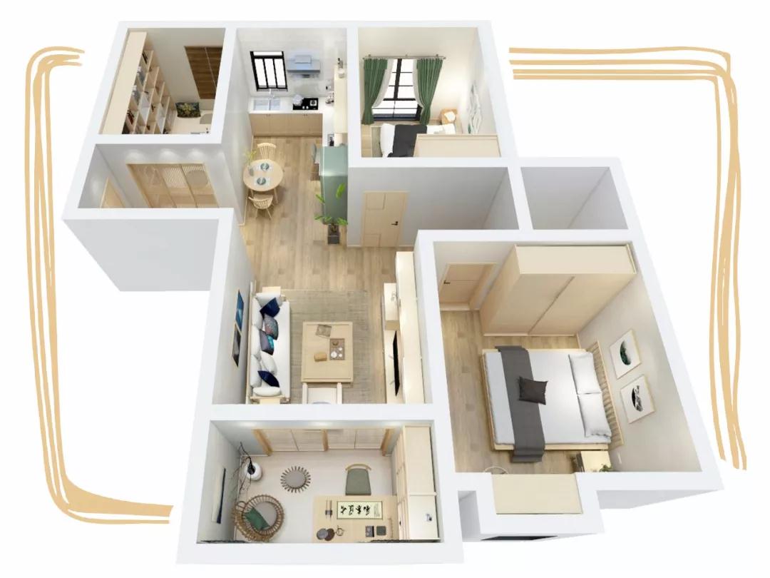 设计风格以简约风为主,带点时尚气息,最好能加入一些中国元素。虽然家里面积不大,但还是希望可以有一间独立茶室和书房,方便夫妻俩品茶聊天和练字。另外,还得保证家里的收纳面积要足够大。