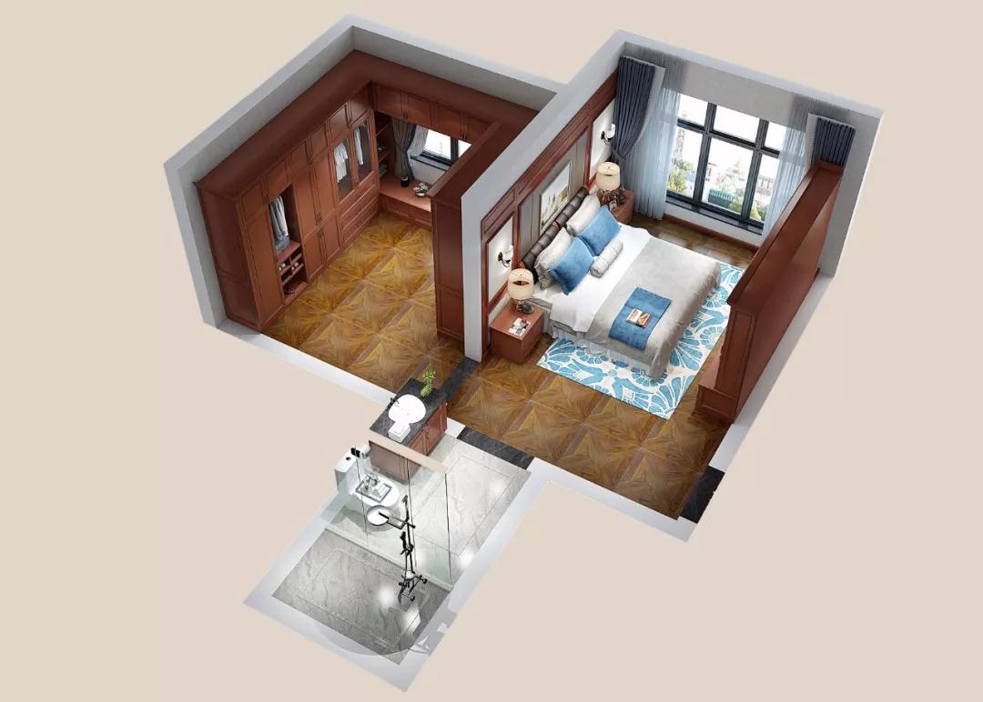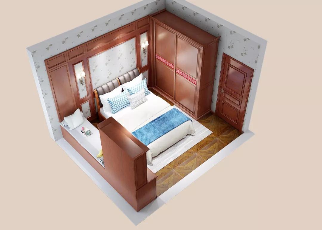 ▲次卧主要是徐教授的儿子节假日回来时居住,独立衣柜加上腰封,成为点缀的视觉中心。护墙加上花卉墙纸,打破沉闷,添加清爽。