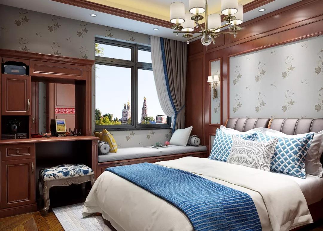▲只有向阳的窗户,那就加上一组卡座,妥妥的一个改造飘窗呀!梳妆台兼做办公桌,欧式的方凳椅,用花纹和线条将贵族感体现出来。