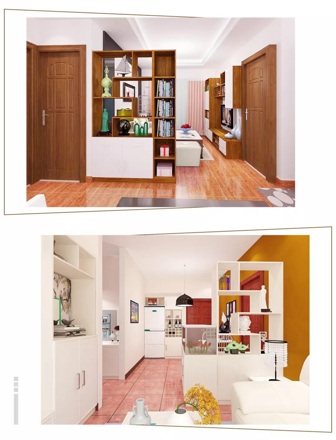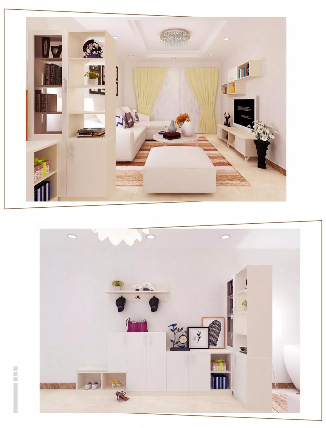 玄关走道太窄,做不了柜子,或者没有玄关设计的小户型,可以在靠近客厅处做垂直于客厅方向的玄关柜,既有隔断作用,又能兼顾客厅收纳。