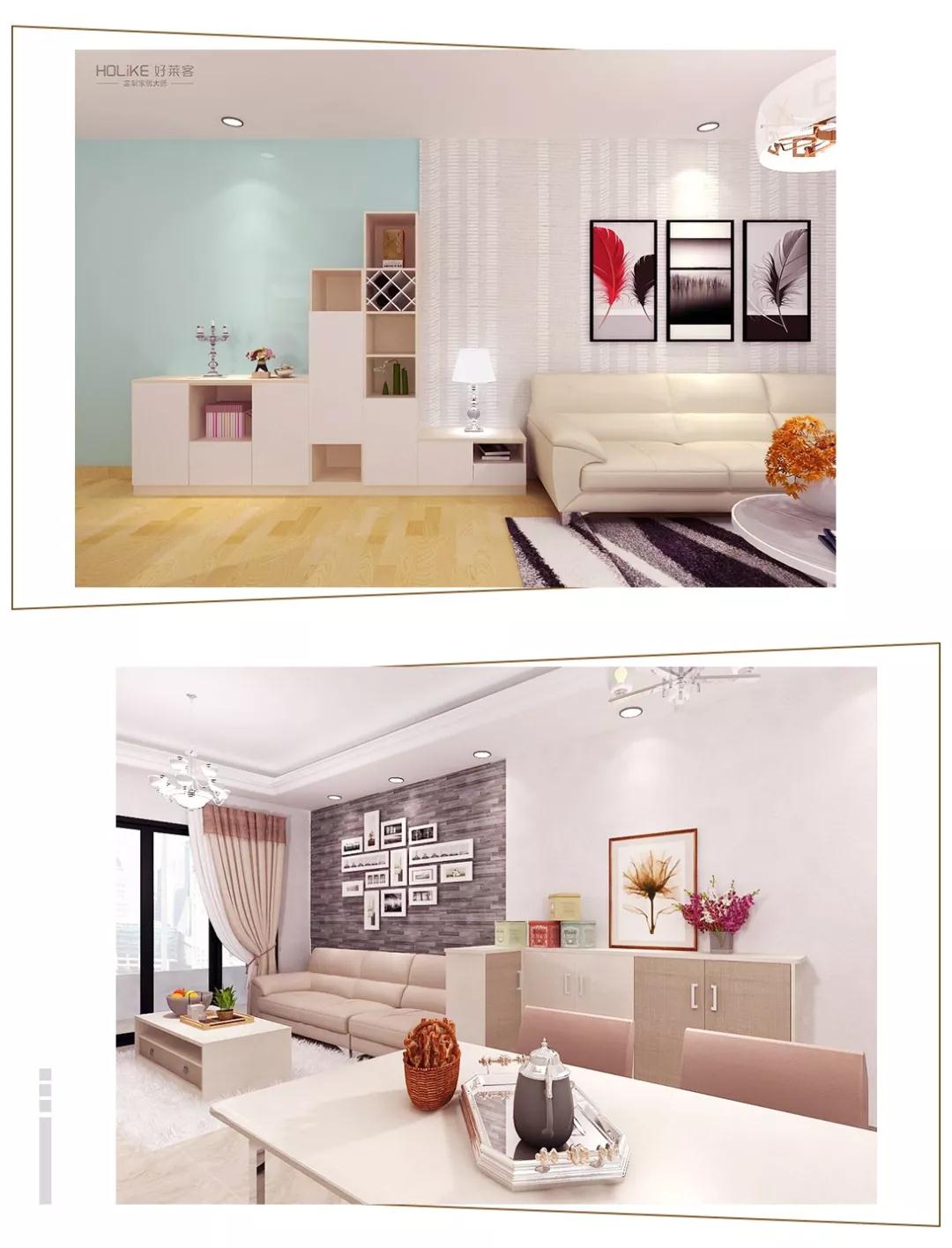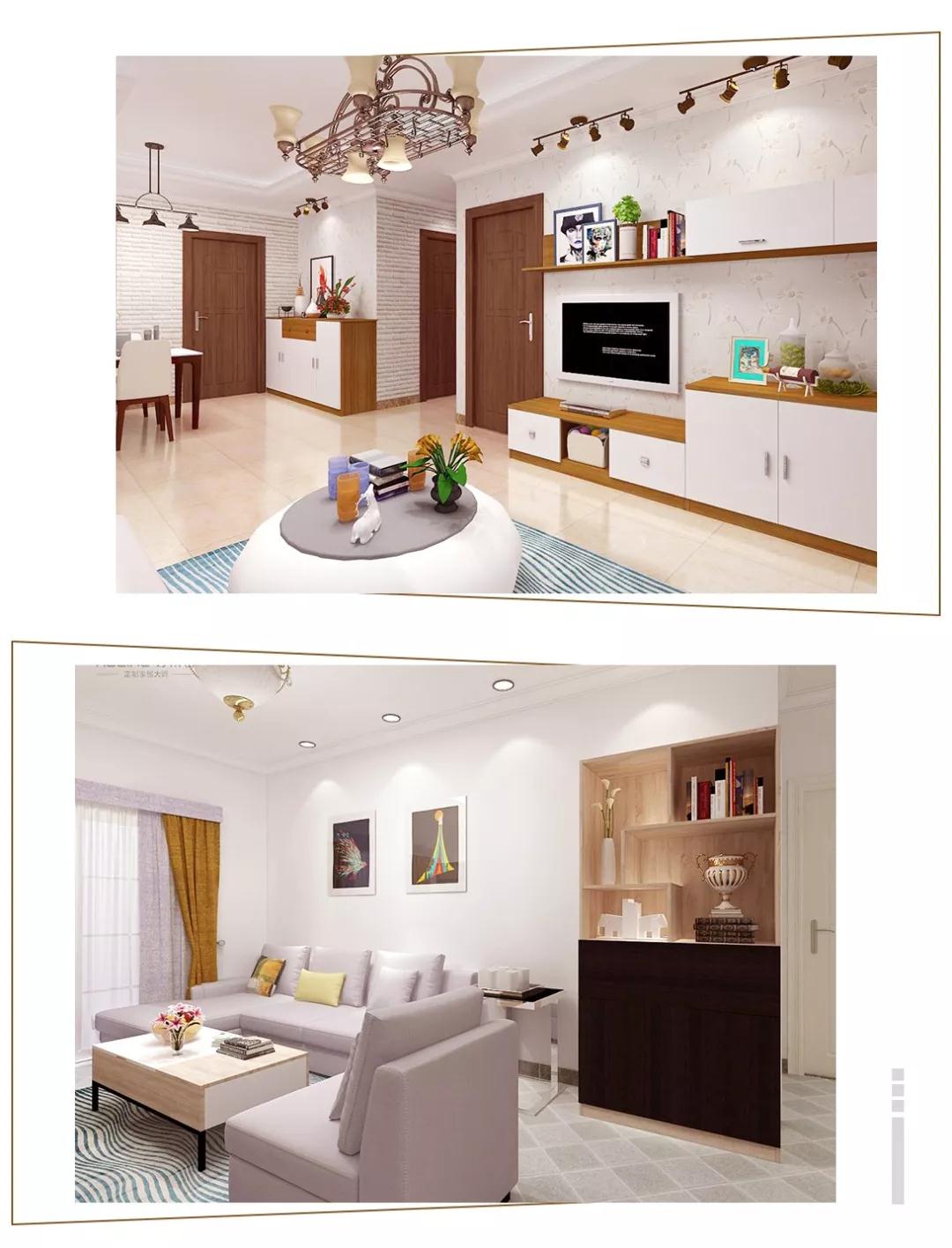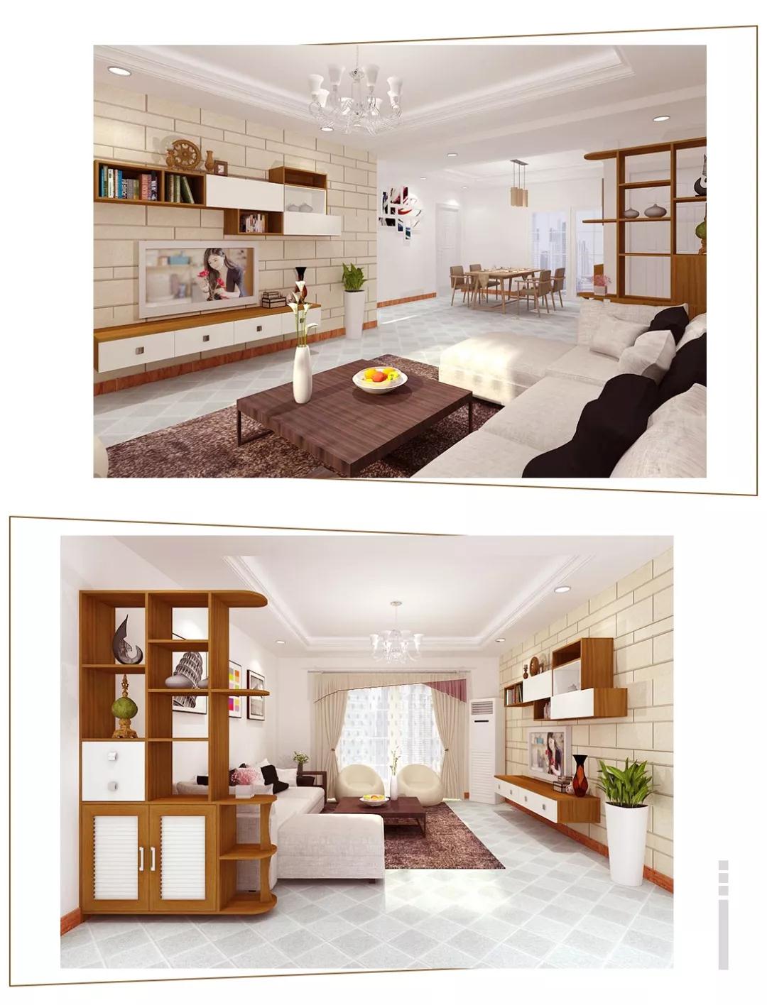 保持视觉相通,除了开放格,镂空板设计也是一种选择。适当增加抽屉应用,对于客厅收纳更便捷。