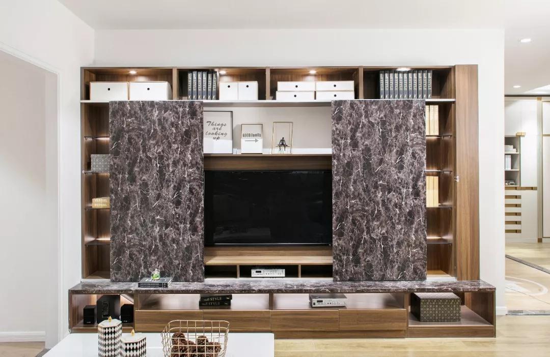 ●电视移门不仅让客厅更有质感,也多了不少趣味性
