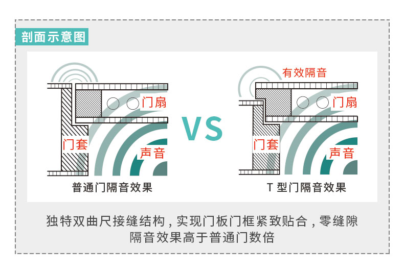 1、隔音效果好。T型门通过物理原理有效阻隔声音的传播路径,门扇和门套采用独特的双曲尺接缝结构,实现门板门框紧致贴合,其独特结构更能阻挡声音穿透。只需关上门,即可实现睡眠环境,给您一个安静的独处空间。