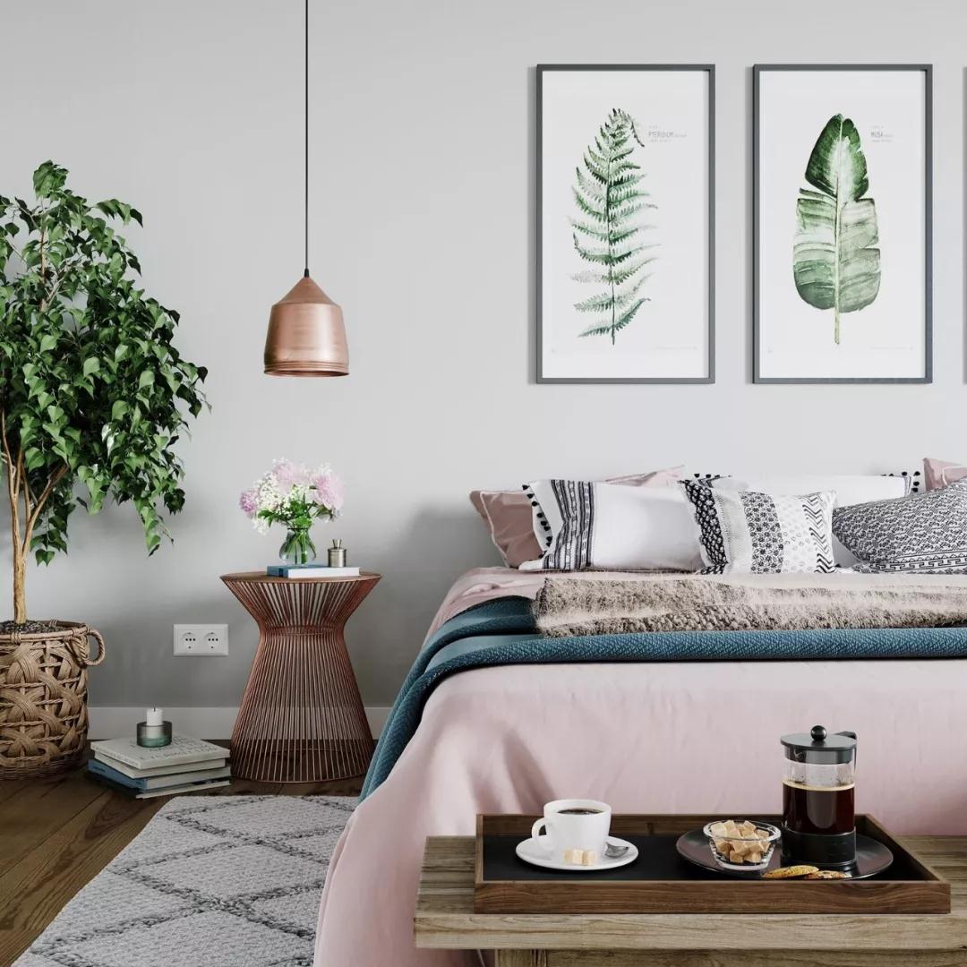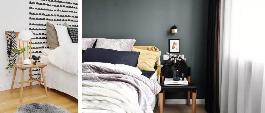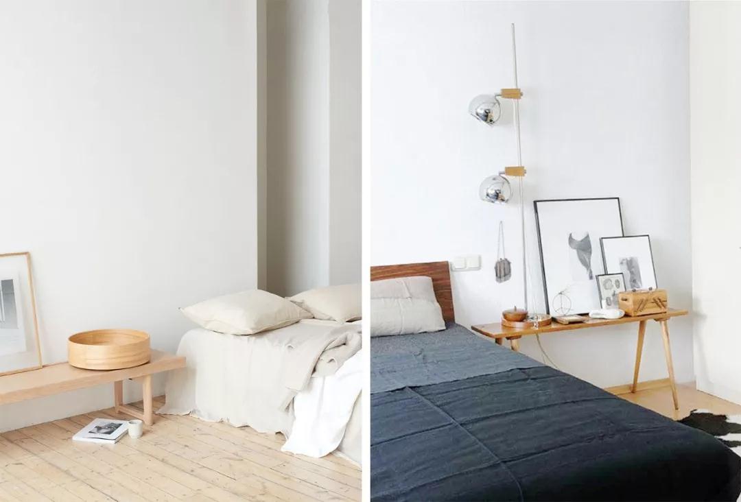 如果你对床头柜的储物需求并不高,那你可以试着把家里不常用的家具挪一挪,就可以拥有一个轻巧的床头柜。