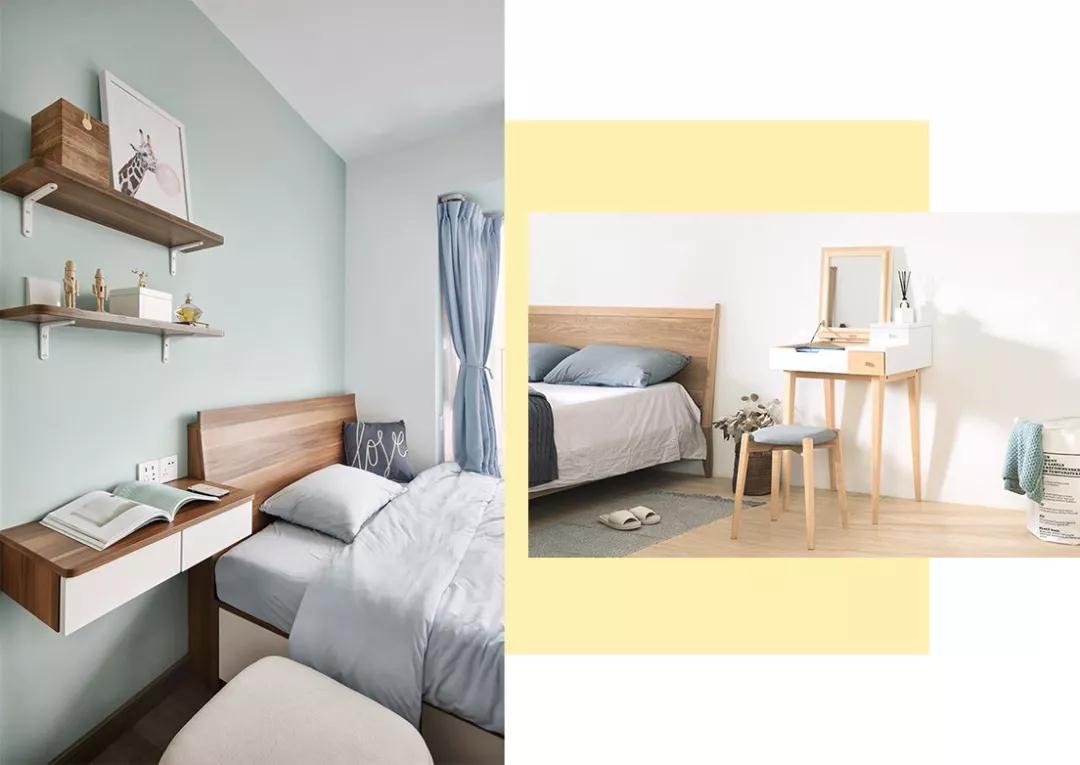 把梳妆台放在床边,既能随手放东西,早晚也能轻松梳妆打扮;爱看书的小可爱也可以选择书桌哦~