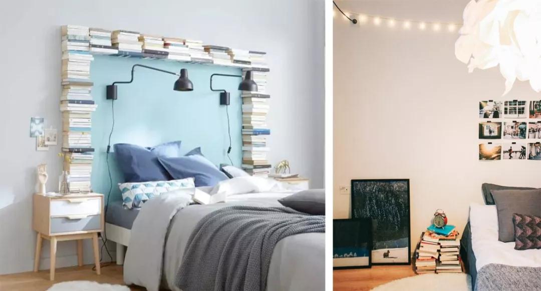 把常看的睡前书籍放在地毯上堆高,你就可以拥有一个最博学的床头柜啦。