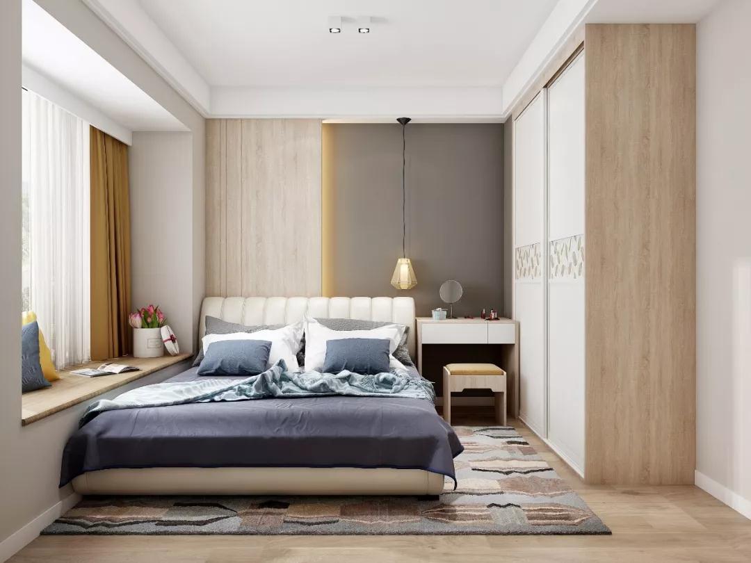 大大的软包箱体床,一躺下去全身的疲惫都会跑光,底部还能放置换季的衣物和被褥,非常舒服。旁边的小飘窗也不能浪费,放上两个抱枕,就变成一个晒太阳看风景的好地方。
