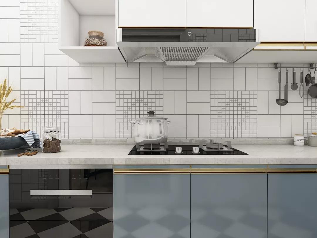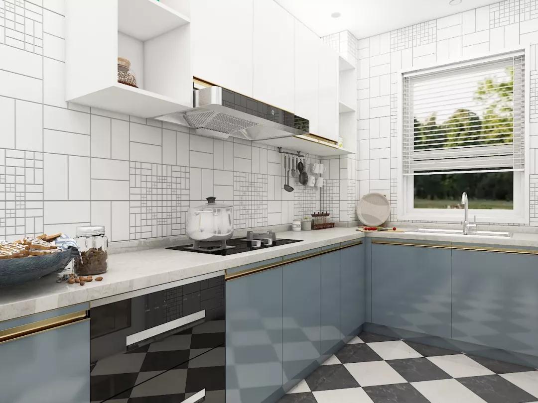 L型橱柜让下厨过程更高效流畅,开放式吊柜避免做饭时的手忙脚乱,一眼就能找到想要的厨具。超大又整洁的操作台面,独有设计感的方格瓷砖,通透性十足的柜身面板…对于热爱烹饪的人来说,简直满满的幸福感!