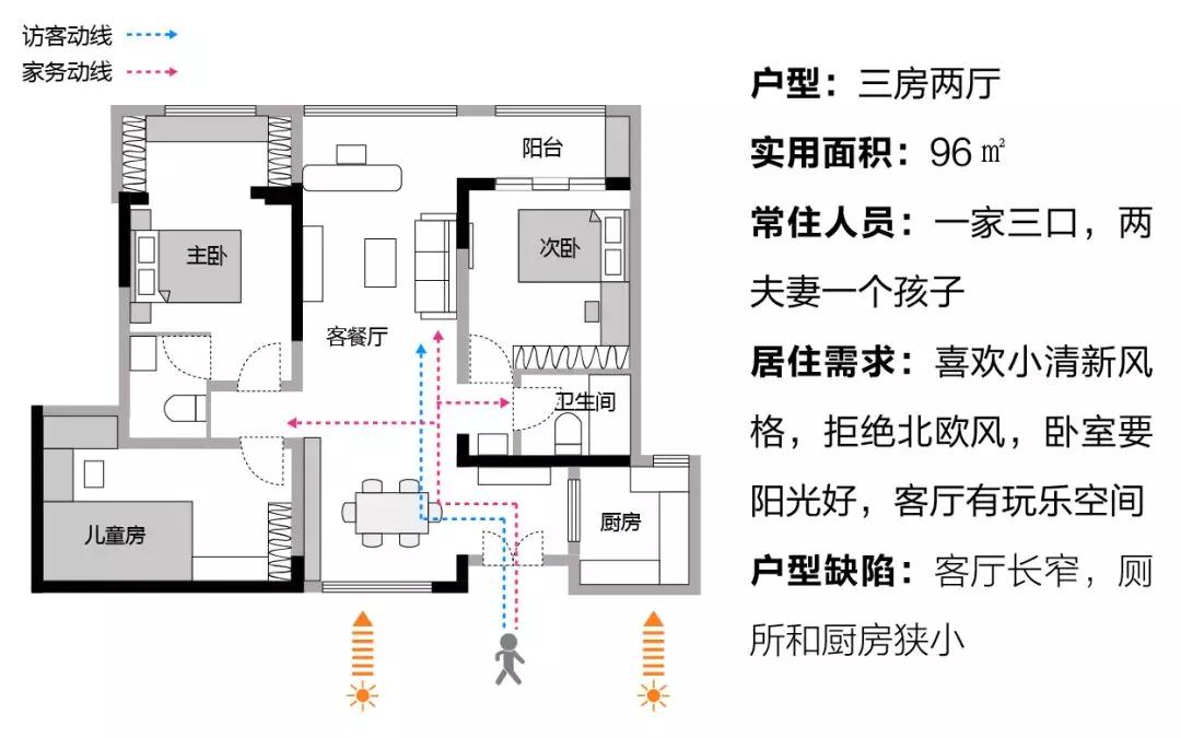 改造思路:利用窗户优势引光入室,软装用小清新的色彩
