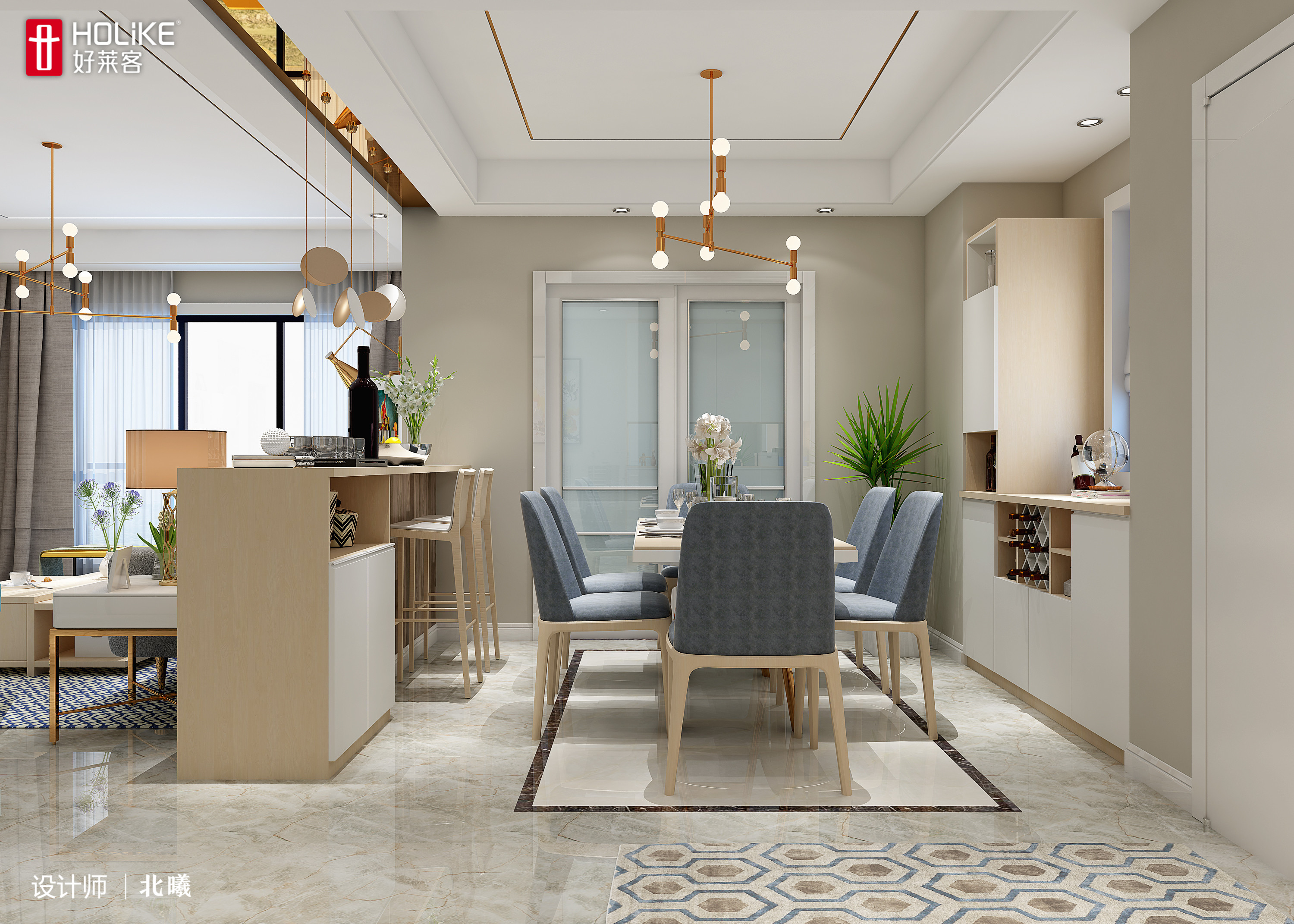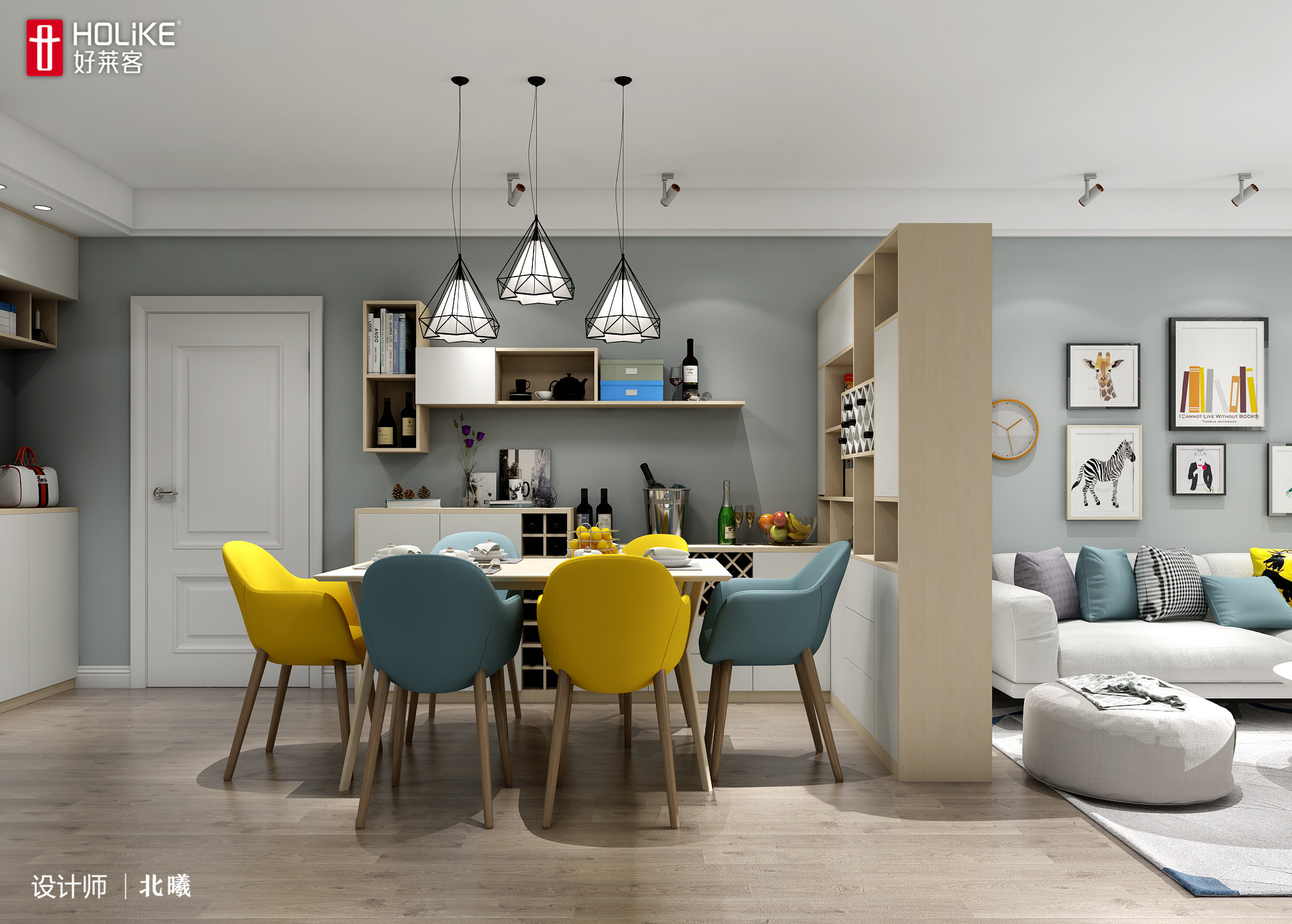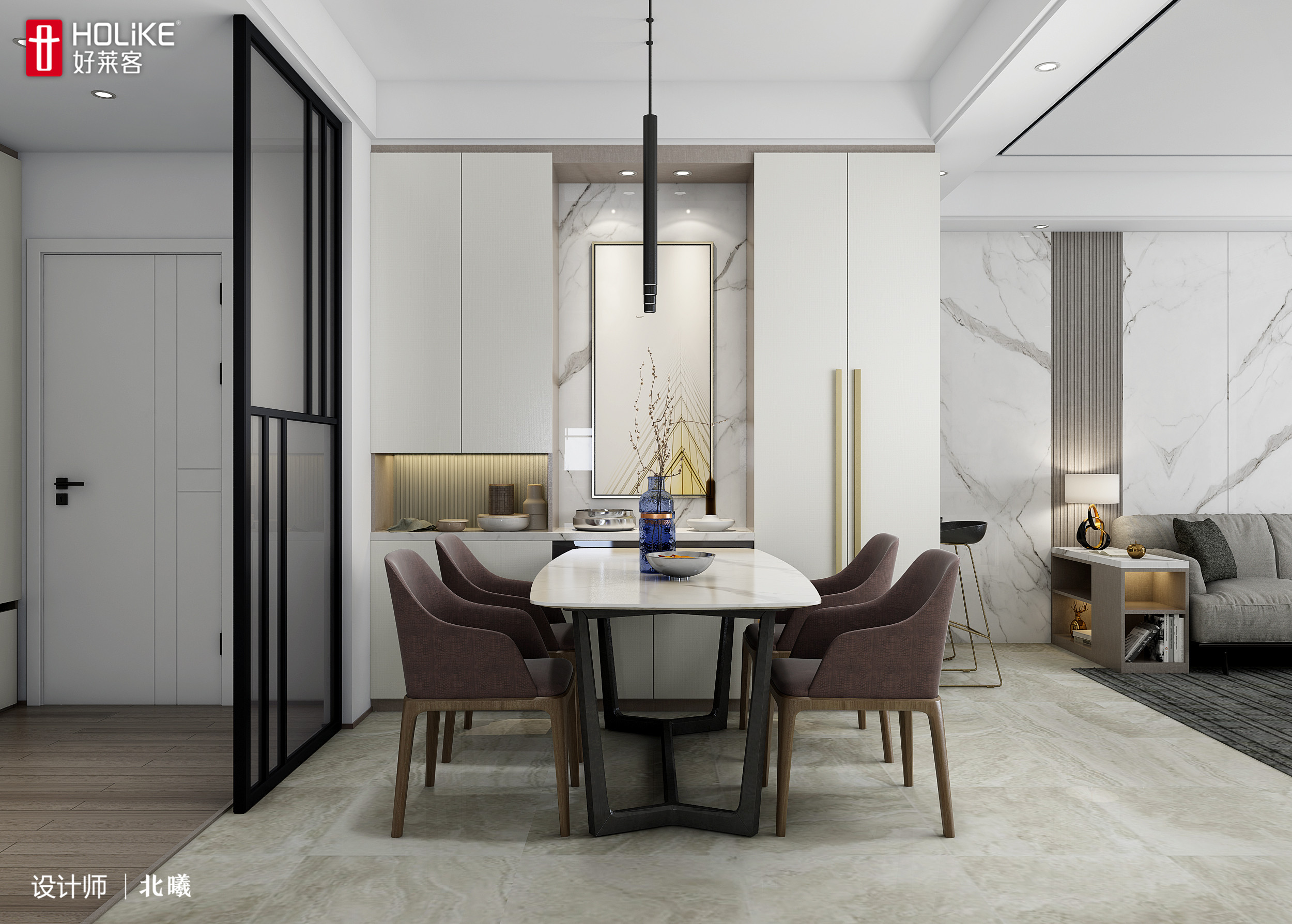 为了满足这部分业主的需求,常常利用餐边柜充当隔断,划分客餐厅空间。