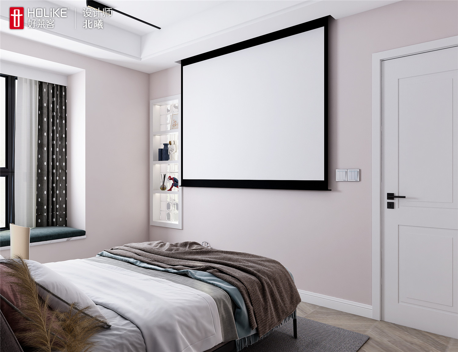 卧室还承担了一部分影视厅的功能,大屏投影也不在话下。一个人窝在卧室的时候,安静地看场电影,享受观影的快乐。